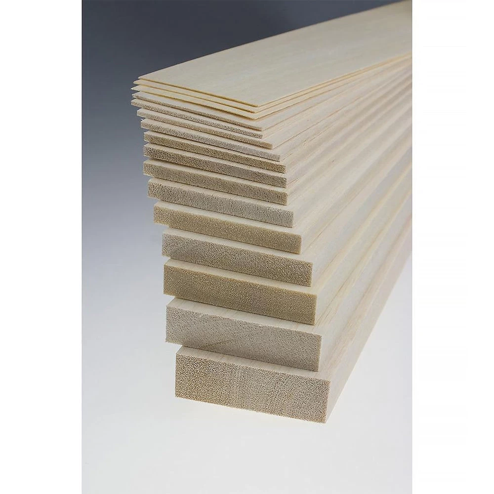A large selection of thin balsa wood with varying ranges of thickness. Ideal for model making and hobby projects.