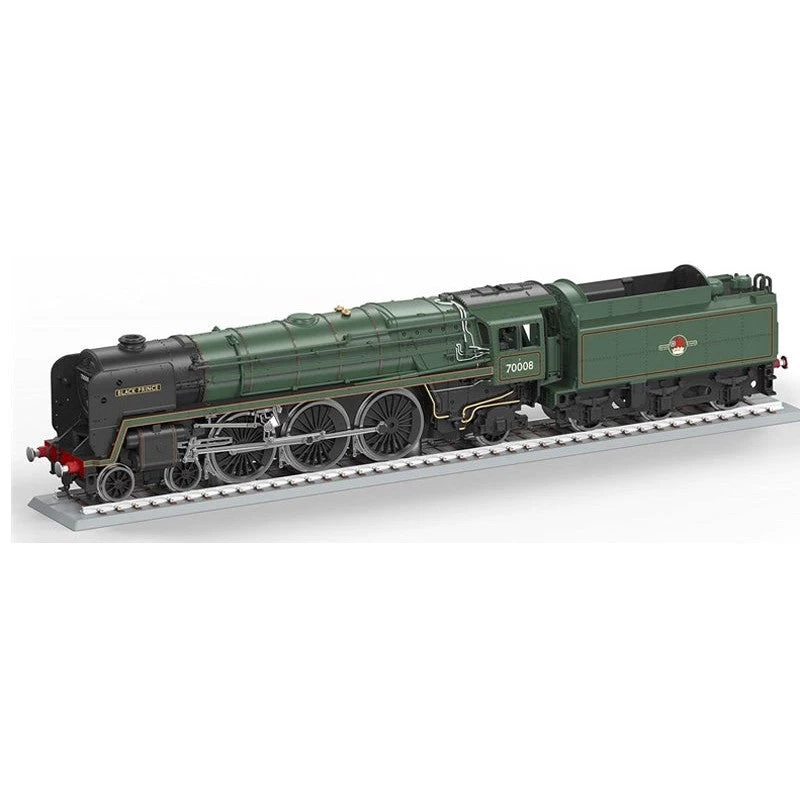 The Britannia Class locomotives were versatile machines whereas other locomotives tended to be designed, built, and used either for passenger or freight duties. ‘Black Prince’ was named after ‘Edward of Woodstock’ the eldest son of King Edward III. Britannia Class No. 70008 was first based at the Norwich engine shed but later traveled to the town of March in Cambridgeshire and finally to Kingmoor. Locomotive No. 70008 was withdrawn from service in January 1967, and stored for five months before being cut up for scrap at Campbells of Airdrie in June 1967.