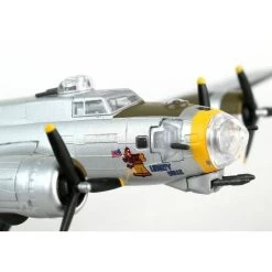 The Boeing B-17 Flying Fortress is a four engine propeller driven heavy bomber. Used during World War II by the United States Army Air Forces and the Royal Air Force. The B-17G is differentiated by its heavy duty armor and additional armaments over previous aircraft. With an ability to take heavy damage and still return home, the stories and photos which circulated helped to add to the B-17’s iconic status.