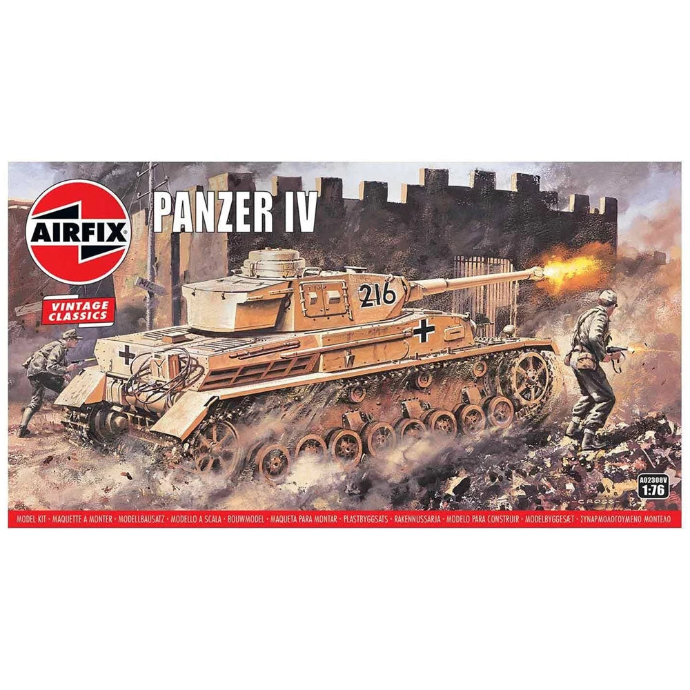 Enjoy the nostalgia of Airfix Vintage Classics with the Panzer IV tank! This impressive and highly reliable tank during WWII is now available in 1:76 scale with two choices of livery for you to bring home for your Airfix or wartime model collection today! Mould Tools made in 1971, pack illustration by Roy Cross, 1971.