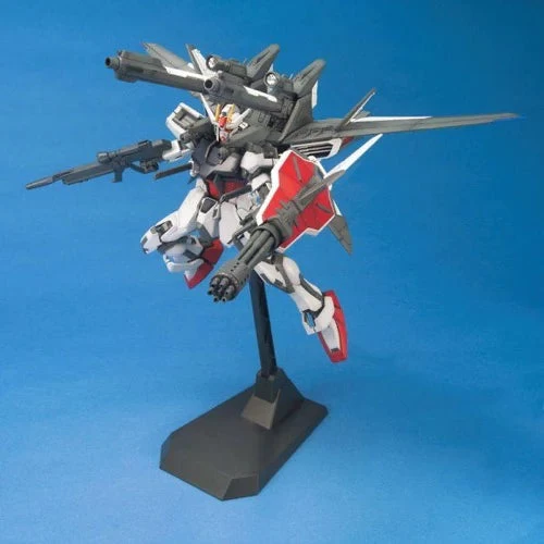 This highly articulated model kit of the Strike Gundam IWSP from “Mobile Suit Gundam SEED MSV” features impressive detail and comes armed with the IWSP (Integrated Weapon Striker Pack. Additional armaments include two anti-ship swords, Grand Slam, two rail guns, two cannons, one Midas Messer beam boomerang, a beam rifle, and a shield mounting a six-barrel gatling cannon. The IWSP can be attached onto the MG Strike Rouge. A display stand, a custom markings decal sheet, and stickers are included.