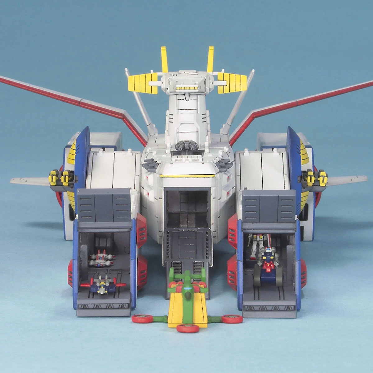 Extremely crisp detail and precision moldings are hallmarks of Bandai’s EX Model line, devoted to high-quality kits. The slightly higher price is worth it for such a well-executed product. Primarily molded in white, this beautiful kit of White Base also comes with a 1/1700-scale Gundam, two Guncanons, Guntank, G Fighter, two Core Boosters, and a Gun Perry. A display stand is included. Paint and cement are required to complete this kit, and a color guide (Japanese only) is included in the instruction sheet. Models in the EX line tend to sell out quickly, so get it while you can!
