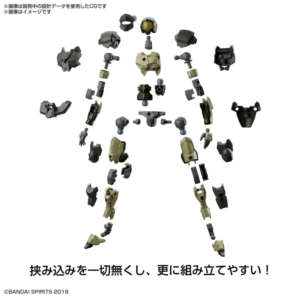 This all-in-one item combines armor and weapon parts in addition to the main figure; while taking full advantage of the range of mobility, there’s no pinching during assembly. Various weapons such as assault rifles, combat knives, and shields are included, and a common 3mm joint structure allows you to combine existing 30MM items with this kit.