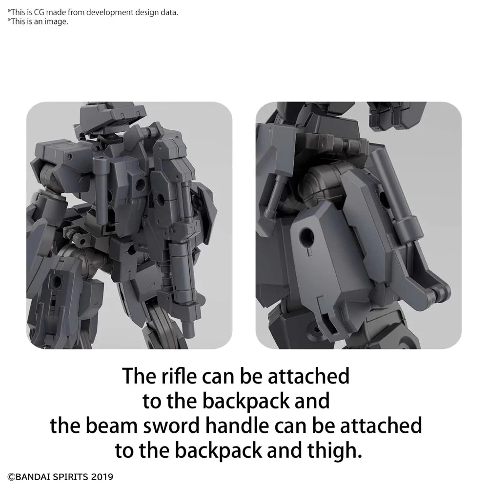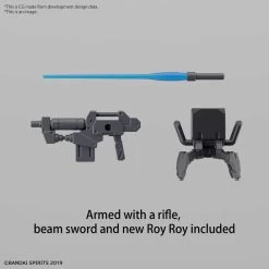 It’s easy to assemble with its “block” assembly system, making it easy to find and identify the parts needed next in order to assemble the kit. The new weapon known as the Roy Roy is included along with its rifle and beam sword; the hilt of the beam sword and the rifle can be attached to the backpack, and the beam sword’s hilt can also be attached to the thigh. Common 3mm joints make it easy to customize by mixing and matching parts with other 30MM series items, too. Order yours today!