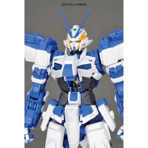 This master-grade model kit features the Gundam Astray Blue Frame D, a unit secretly constructed at Ame-no-Mihashira from the Gundam Seed Astray manga series. The Gundam Astray Blue Frame D is armed with ten Dragoon Swords, a backpack with an Aile Striker, two twin guns, and a long sword. Both standing and sitting pilot figures are also included.