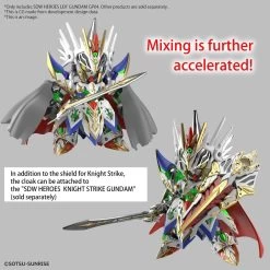 – In addition to the exclusive dagger, a shield for knight Strike Gundam is also included! Furthermore, by mixing, part of the cape can be attached to the SDW HEROES KNIGHT STRIKE GUNDAM (sold separately)!