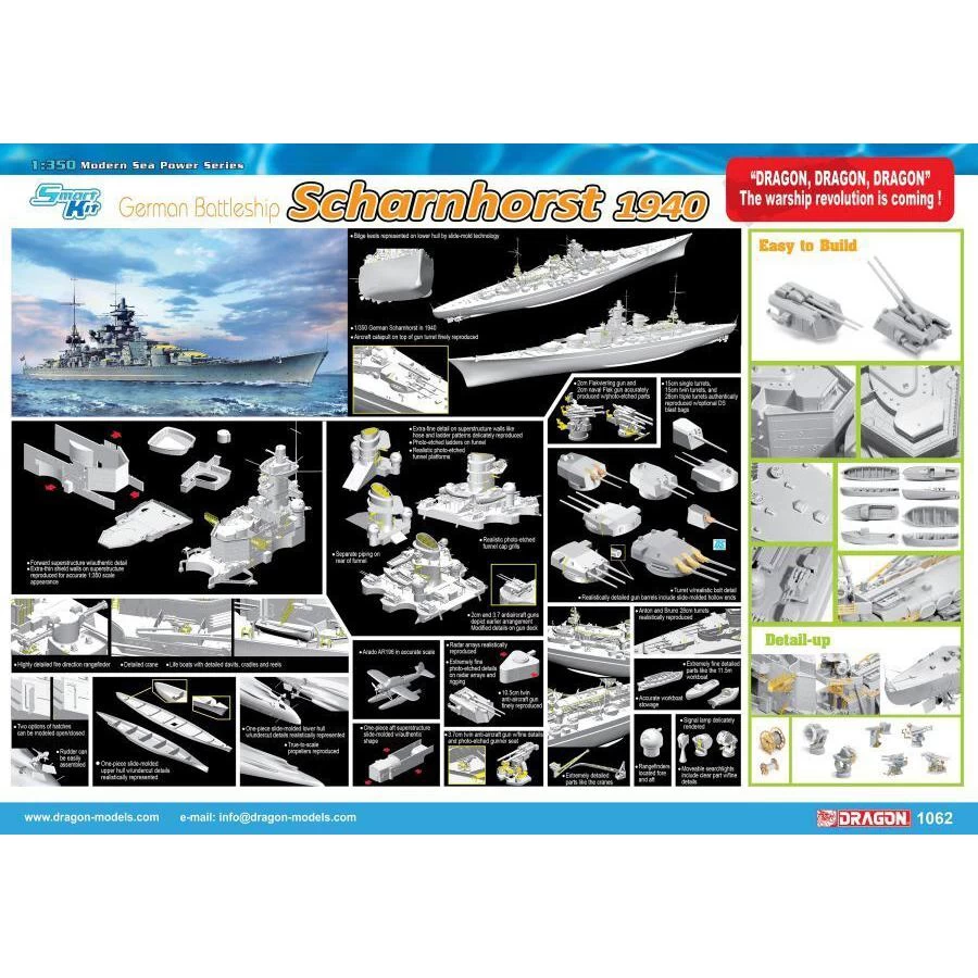 The size, accuracy, ease of assembly and inclusion of bonus parts have all contributed to the roaring success of Dragon’s 1/350 scale kits of the Scharnhorst. Now the warship has been given an overhaul to backdate her to the correct configuration for the 1940 time period.