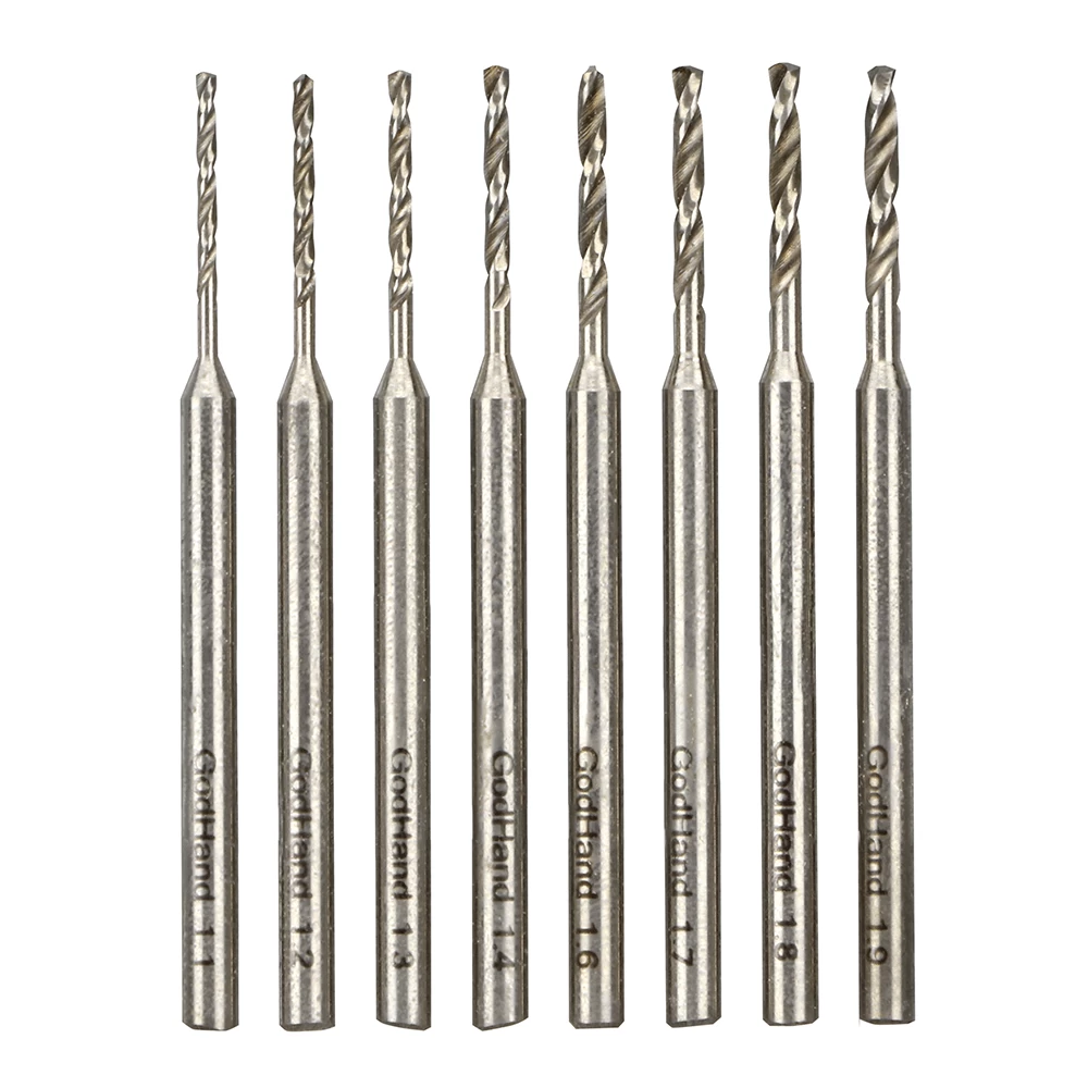 The GodHand GH-DB-8C is a pin vise operated drill bit set designed for fine detail work such as scale modelling, miniatures and other micro drilling tasks where highly accurate, clean holes are the desired end result. Avoid lateral force in operation, as it may break the tapered portion of the drill bit. Perfect for tasks such as drilling out weapon barrels on plastic model vehicles or mechas