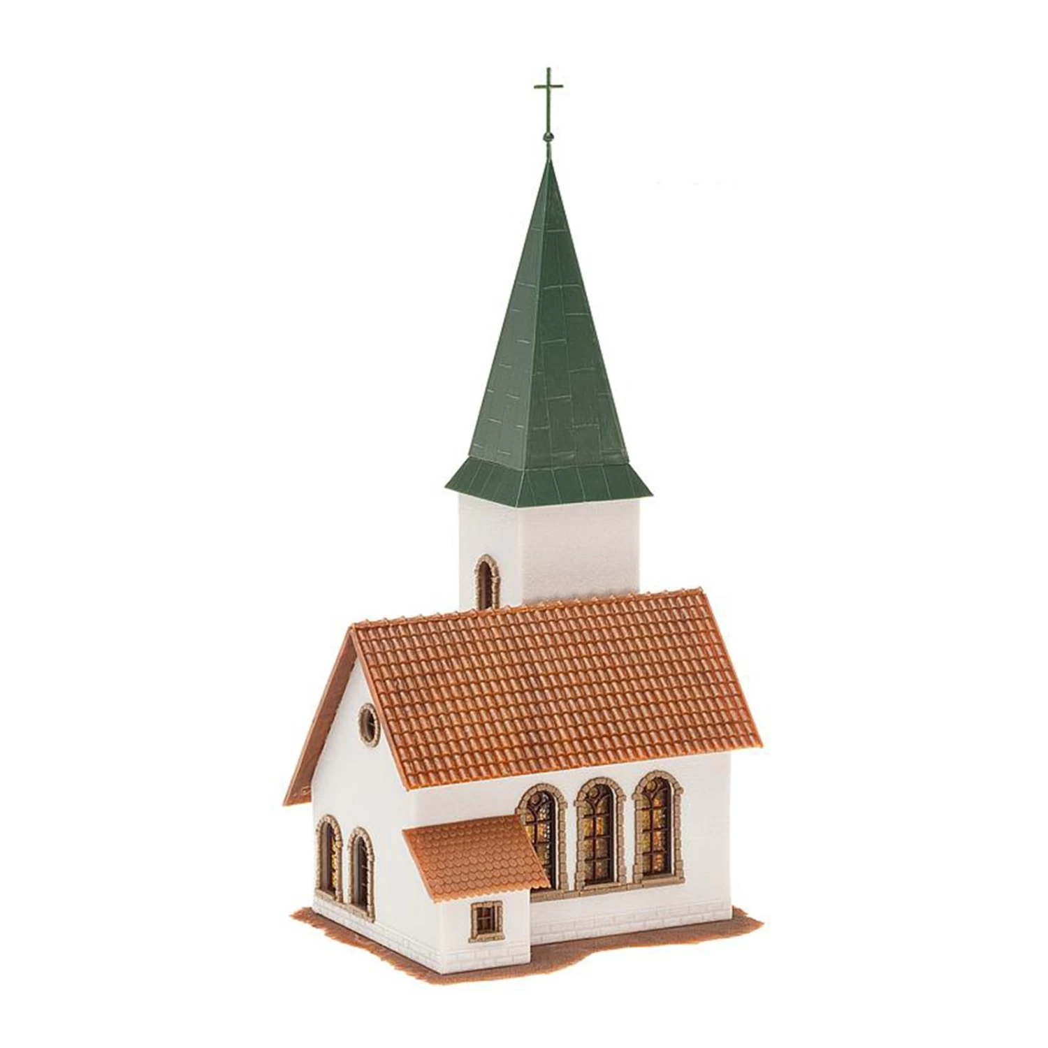 Church with a steeple.Reasonably priced and easy-to-build model requiring little space. Particularly suitable for the background.