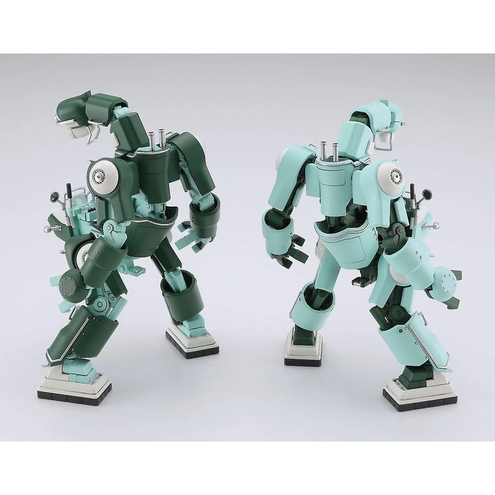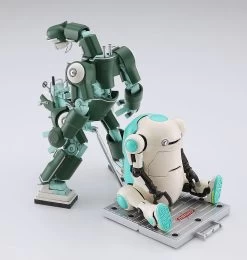 The Mechatro Chubu is a new robot from the makers of the Mechatro WeGo! This 1/35-scale kit includes parts to build two of this helpful robot — one in green and one in light green. The parts are moulded in colour and they snap together, so neither glue nor paint is needed. The robot will be posable after assembly, and it comes with a towing cart that can be used to transport Mechatro WeGo robots or other items. An extremely happy female pilot figure is also included (glue and paint are required for the figure). Approximately 9.7cm tall when assembled.