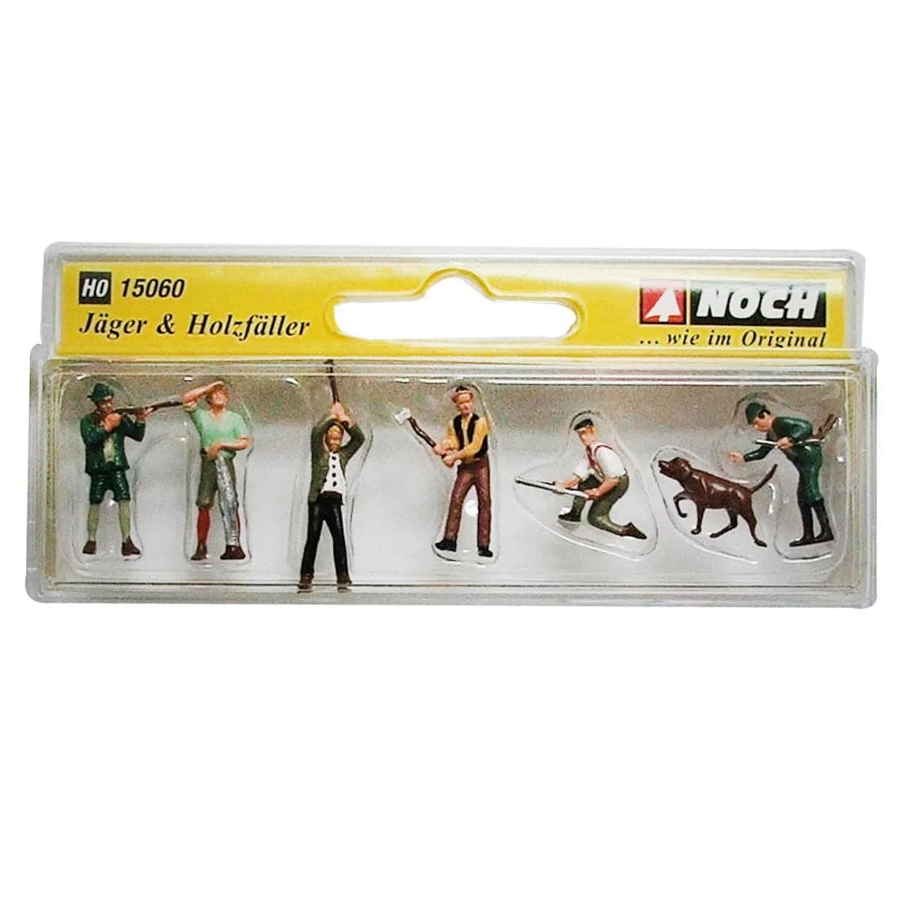 The figure set “Hunters and Lumberjacks” contains figures in different poses. You will find an extensive figure collection, with figures in every possible pose, in the NOCH product range. Decorate your model railway layout with beautiful figures, such as warehousemen, carpenters, chimney sweepers and postmen, but also paramedics or policemen, who keep your model landscape in check. The assortment of figures leaves nothing to be desired and makes your landscape design a lot easier. Perfect for modelers who want to create realistic scenery and layouts be it for a model railway, architecture or any other scale model project layout.