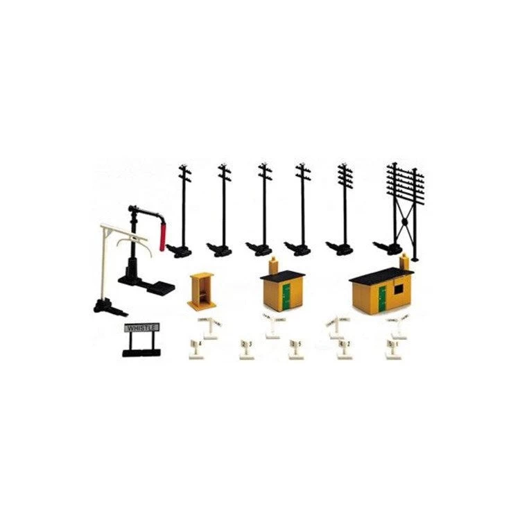 This accessories pack is perfect for adding those subtle yet realistic details to your railway layout, as well as a gift for the railway enthusiast in your life. This pack contains huts, telegraph poles, water crane, loading gauge, whistle sign, and mile and gradient posts.