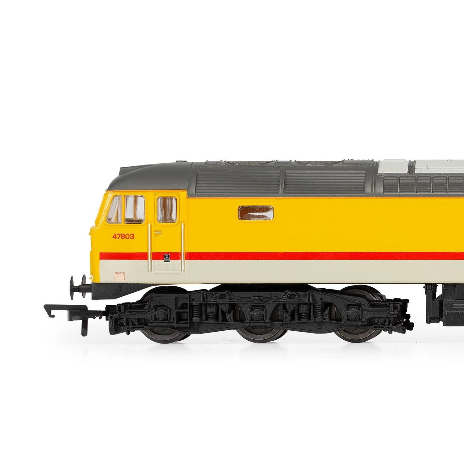 The British Rail Class 47 is a class of British railway diesel-electric locomotive that was developed in the 1960s by Brush Traction. A total of 512 Class 47s were built at Crewe Works and Brush’s Falcon Works, Loughborough between 1962 and 1968, which made them the most numerous Class of British mainline diesel locomotive. They were classified as Type 4s.They were fitted with the Sulzer 12LDA28C twin-bank twelve-cylinder unit producing 2,750 bhp (2,050 kW) – though this was later derated to 2,580 bhp (1,920 kW) to improve reliability – and have been used on both passenger and freight trains on Britain’s railways for over 50 years. Despite the introduction of more modern types of traction, a significant number are still in use, both on the mainline and on heritage railways. As of October 2016, 81 locomotives still exist as Class 47s, with further examples having been converted to other classes; 30 retain “operational status” on the mainline.By 1986, only five of the original 512 locomotives had been withdrawn from service, all because of serious accident damage. However, with work for the Class declining due to the introduction of new rolling stock and spare parts becoming difficult to source, some inroads started being made.The first locomotives to be targeted were the non-standard pilot batch of 20, now numbered 47 401-47 420. Three locomotives were withdrawn as life-expired in February 1986 and the remainder of the batch that had not recently been overhauled followed in the next two years. All 20 were withdrawn by 1992.Meanwhile, BR drew up a ‘hit-list’ of locomotives for early withdrawal, mainly including those with non-standard electrical equipment, known as series parallel locomotives. In the outset, withdrawals were slow, mainly due to the surplus of spare parts and new flows of freight traffic which required extra locomotives; only 61 locomotives had been withdrawn by the end of 1992. However, with the introduction of new locomotives, the rate of withdrawal quickly rose, with 86 more 47s reaching the end of their lives in the next three years. With most of the non-standard locomotives withdrawn, the reduction of the fleet again proceeded more slowly. The privatisation of British Rail also produced new independent rail companies needing available traction until they could order new locomotives. From 1996 to 2006, an average of around fifteen locomotives per year were taken out of service.