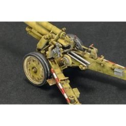The 150 mm SFH18 howitzer was widely deployed by the Wehrmacht on all of the key fronts during WW11. It was developed during the ’20s and ‘30s by Rheinmetall and Krupp, one of the main artillery companies in Germany, with a view to optimizing resources and technological capabilities within the parameters imposed by the Treaty of Versailles. From 1933 onwards, Germany’s rearmament planning became ever more ambitious, with a particularly significant increase in the production of howitzers and field cannons. The SFH18 had a simple and reliable structure with a maximum range of 13.5 km. It could be divided into two sections and towed by horses, or more often during the war, by half-tracks. The SFH18 had a seven man crew. A 105 mm caliber version was developed on the same carriage, (sK 10,5 cm)which was characterized by the longer barrel, but was produced in few specimens as much heavier than the standard 105 mm leFH18, which was the field artillery cannon supplied to the Wehrmacht.
