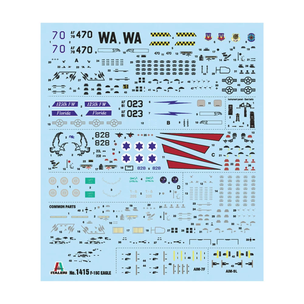 The Mc Donnel Douglas F-15 is an all-weather single seat American fighter, developed with the specific goal to gain and maintain air superiority. The F-15 Eagle has been designed during the ‘70s to provide to U.S. Air Force a modern and extremely high performance advanced fighter. The F-15C is representing the more modern version and it is nowadays largely used by U.S. Air Force, U.S. National Guard, and by the Air Forces of several Countries as Japan, Israel, and Saudi Arabia. The F-15 took part to the Gulf War in 1991 and it was able to guarantee the air superiority to Coalition Forces. It has been the most effective fighters with an impressive high number of enemy planes shot down. Armed with a 20mm. M61 gun it can use a wide variety of air-to-air missiles. Thanks to the two powerful Pratt & Whitney F-100 after-burring turbofans engines, the “Eagle” is able to reach the maximum speed of Mach 2.5.