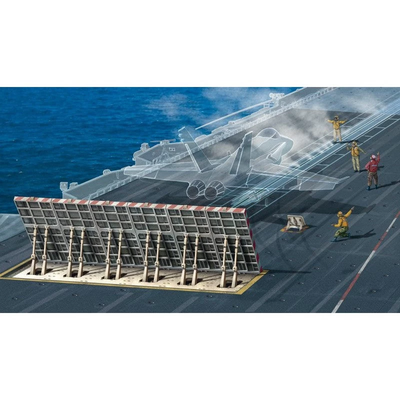 The kit allows you to make a flight deck section of a modern aircraft carrier. Great care in the details of the catapult and of the Jet Blaster Deflector used to prevent possible damages generated by the aircraft exhausts blasts during the take-off. The Jet blast deflector is raised and lowered by hydraulic cylinders reproduced in the scale model kit. The carrier deck section is the ideal scenario to build up interesting dioramas with carrier-based aircrafts scale models.