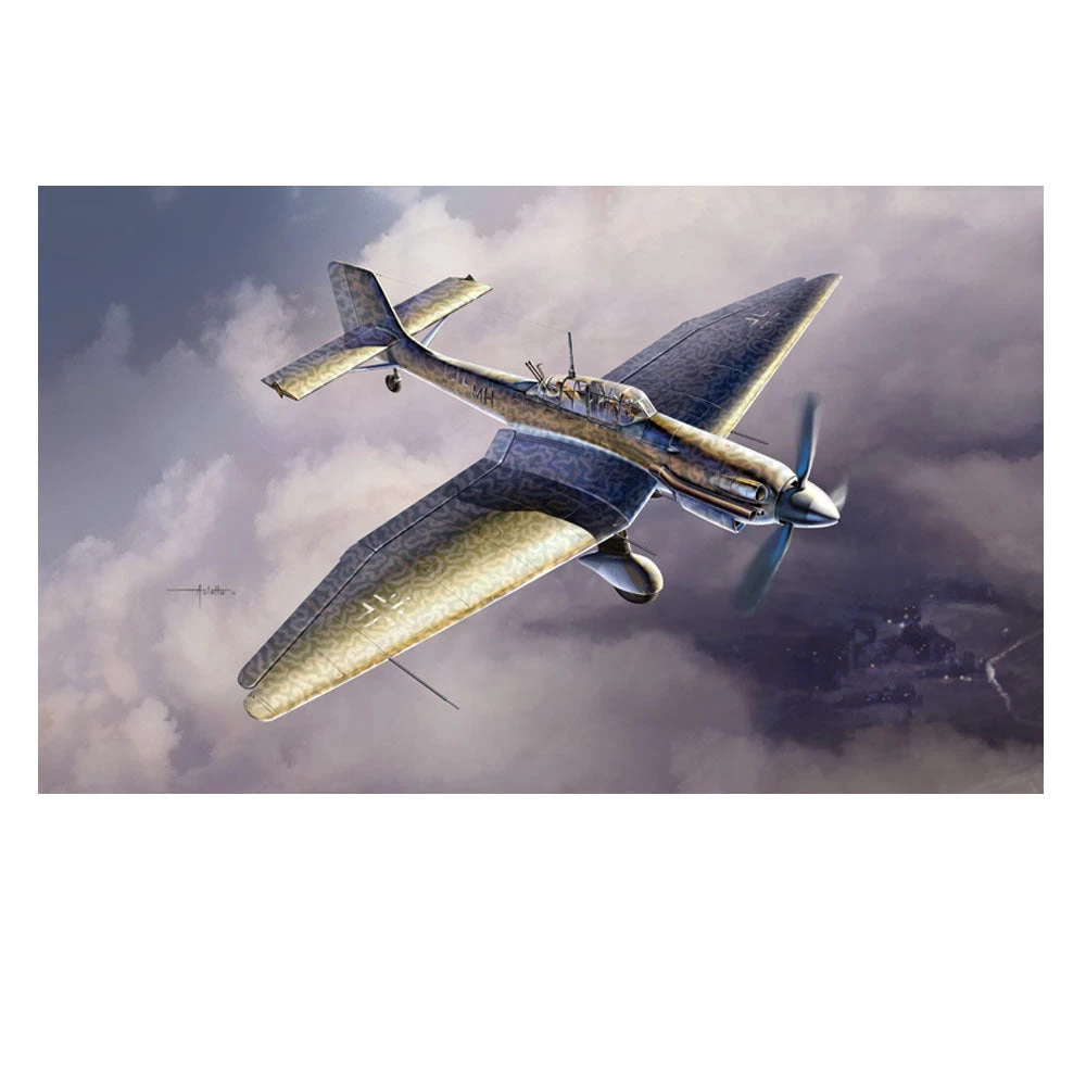 The JU-87 dive bomber is certainly one of the most famous airplanes of World War II.?This characteristic モinverted gullwingヤ aircraft became famous at the early stages of the war, when Germany had virtual air superiority.?Later on the planesメs limits became obvious. The Stukas were then used as troop support aircraft on the Eastern front, where its robust fuselage proved to be quite adequate.?During the final war period the plane was used as a night bomber where the flying qualities of its crews were important in a situation of technical and numeral inferiority.
