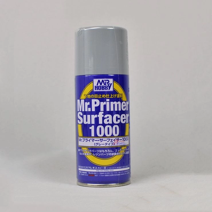 This is a surfacer with primer (base filling paint). The material used in Surfacer 1000, which is gaining overwhelming popularity for plastic models has been improved for this product. Surface attachment has been enhanced not only for plastic models but also for metal in etched parts and resin. Spray type and bottle type are available. Color is gray.