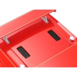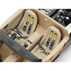 – With the removal of the hood, the engine can be viewed even after completion. It features twin carburetor, 5-speed transmission, and shift linkage in the rear, plus new air funnels.