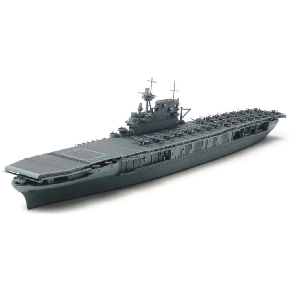 The USS Yorktown was completed in September 1937 as the first ship of her namesake-class and the U.S. Navy’s sixth aircraft carrier. When the Pacific War broke out, she became the flagship of Task Force 17 under the command of Rear Admiral Frank J. Fletcher and conducted a number of operations around the Pacific. During the Battle of the Coral Sea in May 1942, she helped thwart the Japanese Navy’s advance on New Guinea despite suffering severe damage. Subsequently, at the Battle of Midway, the Yorktown and her sister ships USS Enterprise and USS Hornet defeated the Japanese Mobile Fleet, but the Yorktown herself suffered severe damage by torpedo and bomb hits from the aircraft of the Japanese carrier Hiryu. She was finally sunk by torpedoes from the Japanese submarine I-168. The Tamiya 1/700 scale model is a precise replica assembly kit of this iconic carrier during WWII.