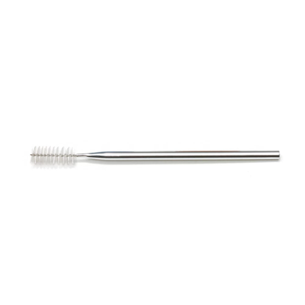 – Nylon bristles and a stainless steel stem with grip