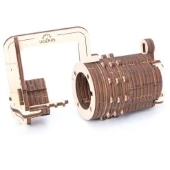 Inspired by “The Da Vinci Code”. We dived into the world of conspirology, secrets and cryptography while designing our new intriguing Cryptex model. The Combination Lock consists of two parts. It opens if you set the right 3-digit combination. You can hide the keys, small items and your own secrets inside. The Lock has a convenient “eyelet” to hang the lock on a bag. Try to create your own Da Vinci Code’s Cryptex with 1000 combinations of 3 digit code. Assemble UGEARS Lock and get the idea of modern combination lock principle.